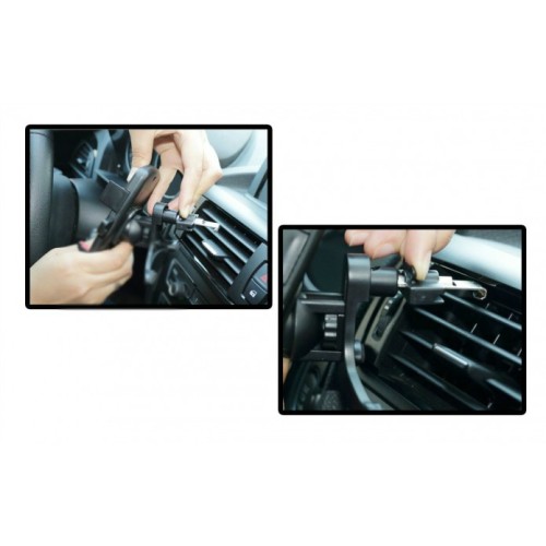 Βάση στήριξης smartphone αυτοκινήτου με πολλαπλές ρυθμίσεις. Τοποθέτηση στις περσίδες του κλιματιστικού με ειδικό κλιπ. Βάση στήριξης κινητού προσαρμόσιμου πλάτους, με προστατευτικά σιλικόνης. Πτυσσόμενος βραχίονας - ρύθμιση κλίσης. Μέγιστο πλάτος/άνοιγμα βάσης: 9cm.