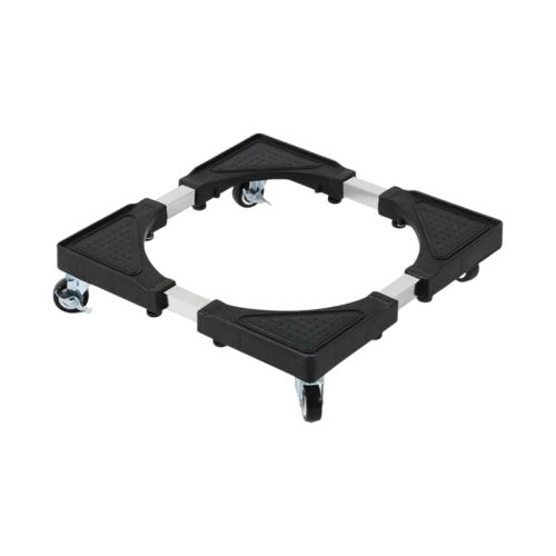 Κινητή ρυθμιζόμενη βάση μεταφοράς πλυντηρίου-ψυγείου με ρόδες. Διαθέτει ρυθμιζόμενες διαστάσεις με μέγιστο 50x60x10cm. Διαθέτει κλιπς σταθεροποίησης και κλείδωμα ρόδας. Υλικό κατασκευής: πλαστικό και αλουμίνιο