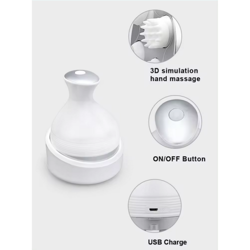 Συσκευή μασάζ κεφαλής με 4 μαλακά άκρα σιλικόνης που κινούνται κυκλικά και προσφέρουν μια απίστευτη αίσθηση χαλάρωσης με πολλές ευεργετικές ιδιότητες Ιδιότητες: Βελτιώνει την κυκλοφορία του αίματος, ανακουφίζει από πονοκεφάλους, πιάσιμο και ενοχλήσεις ενώ βοηθά στην γρήγορη και υγιή ανάπτυξη των μαλλιών σας. Είναι επαναφορτιζόμενη για άνετη ασύρματη χρήση. Μπορεί να χρησιμοποιηθεί σε βρεγμένο δέρμα καθώς οι κεφαλές τις είναι αδιάβροχες ενώ αφαιρούνται και πλένονται. Μπορεί ακόμη να χρησιμοποιηθεί και στο υπόλοιπο σώμα για ήπιο μασαζ ή και στο κατοικίδιό σας.